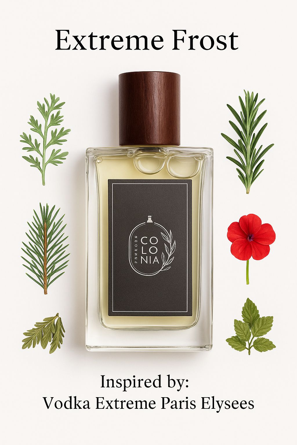 A bold masculine fragrance that opens with the fresh herbal sharpness of artemisia and rosemary, transitions into a green heart of pine and geranium, and settles into a deep base of musk and patchouli. Extreme Frost is crafted for the man who seeks energy, freshness, and strength in every moment. Perfect for daily wear and evening confidence alike.