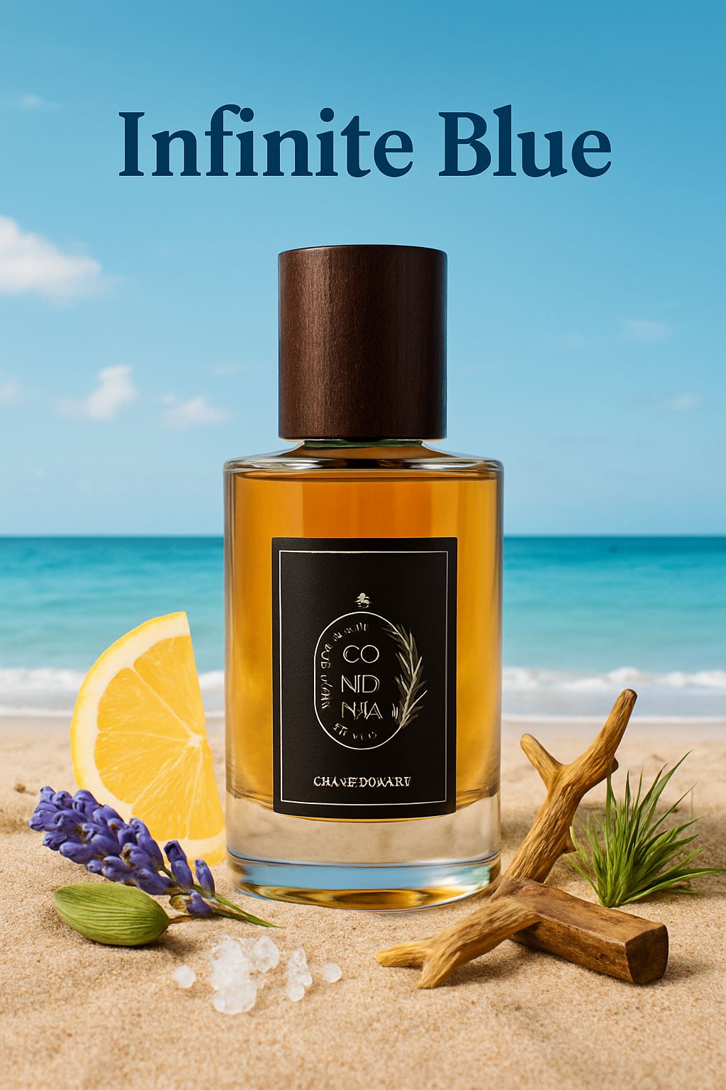 Infinite Blue embodies the serenity of the ocean and the strength of the horizon. It opens with crisp marine and citrus notes that evoke freshness and clarity, followed by a refined heart of lavender, cardamom, and vetiver. The base blends incense, vanilla, and woods for a warm, lingering depth.