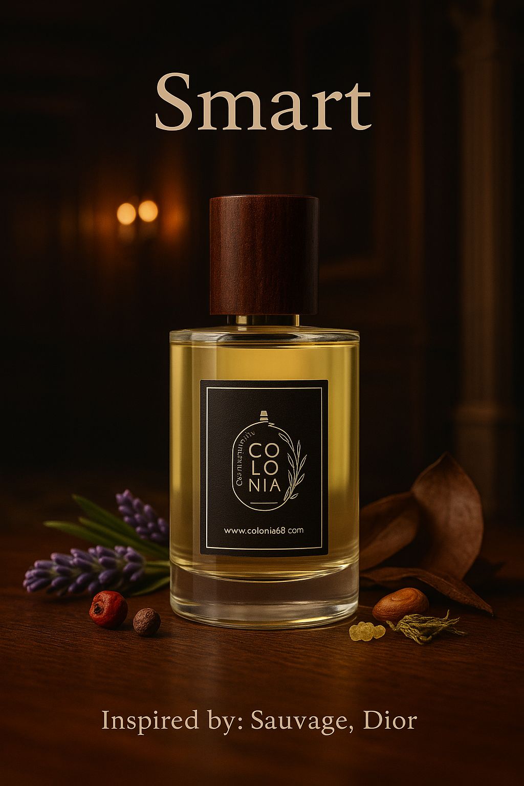 A bold and modern fragrance that captures raw freshness and timeless masculinity. Smart opens with vibrant Calabrian bergamot and spicy pepper, blending into a heart of aromatic lavender, earthy vetiver, and warm patchouli. The base of ambroxan, cedarwood, and labdanum adds power, depth, and long-lasting elegance.