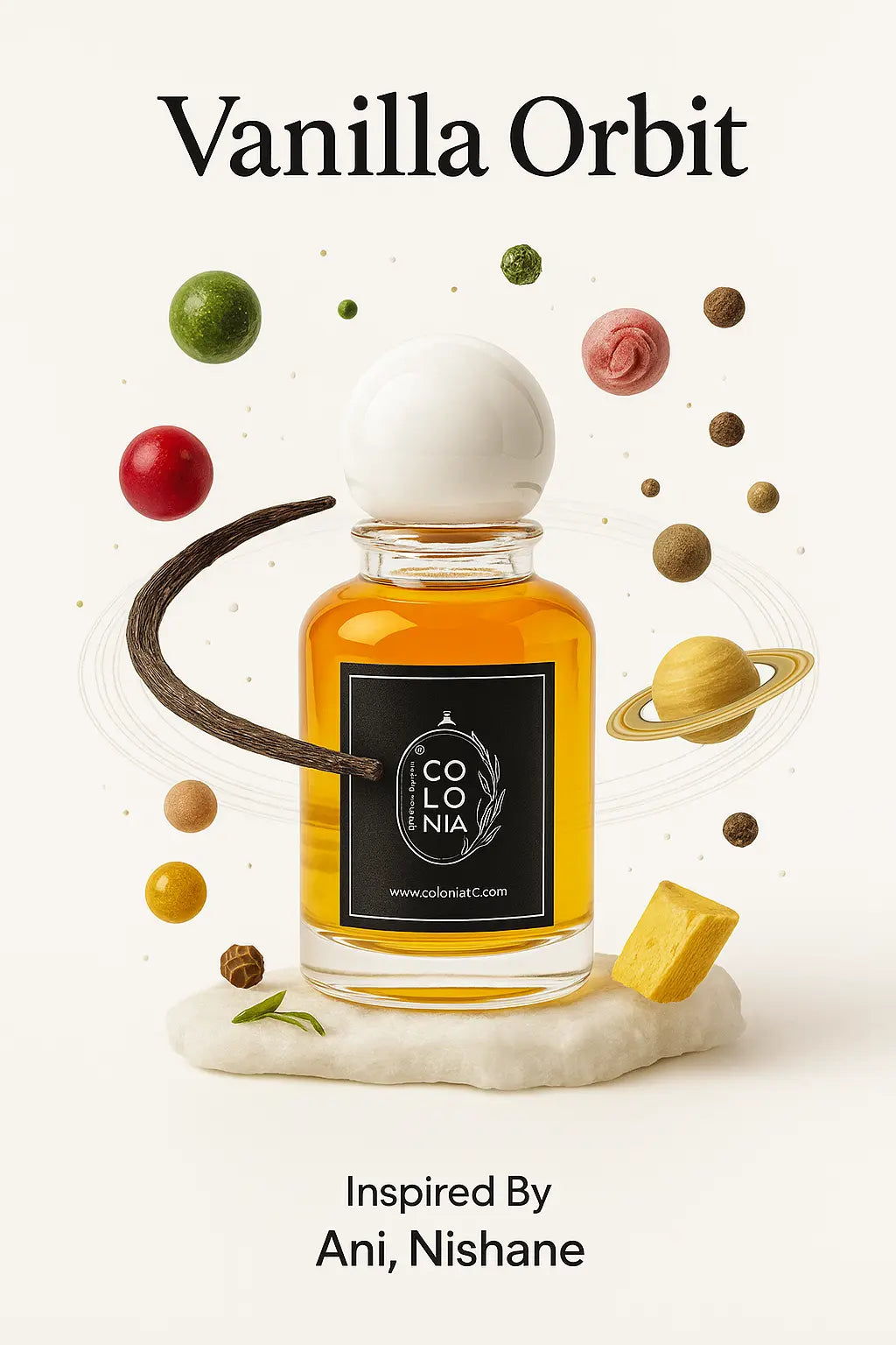 Vanilla Orbit is a sensual journey that revolves around the warmth of vanilla and the allure of oriental spices.