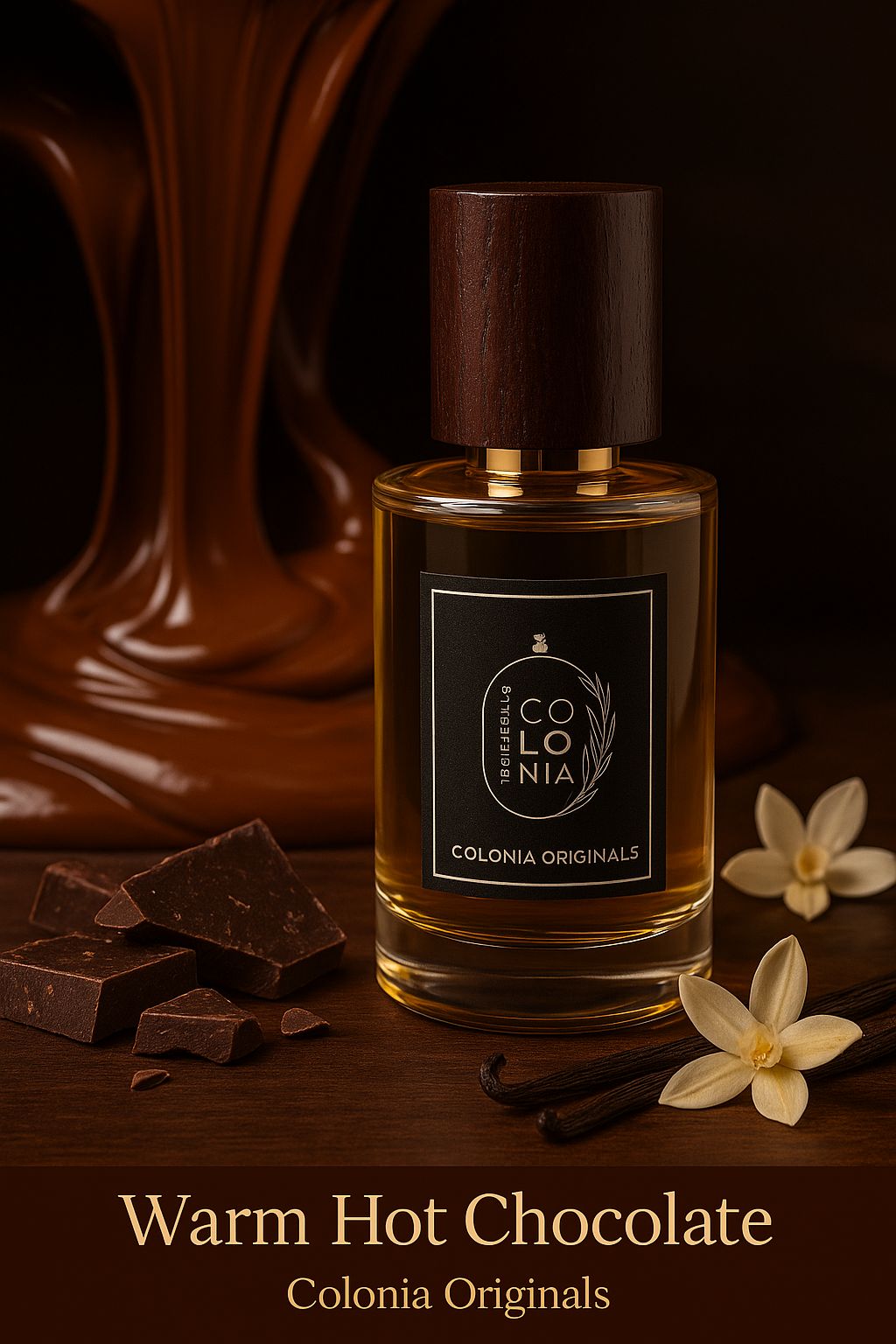 A decadent and indulgent feminine scent that opens with rich chocolate intensity, melts into a warm vanilla-cream heart, and settles into a smooth woody embrace.